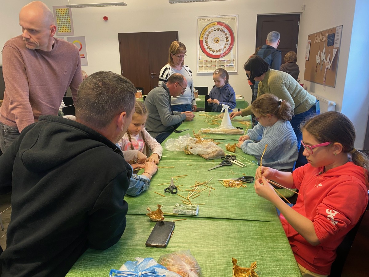Közben Benedekné Gosztonyi Hajnalka a szalmafonás alapjait mutatta meg, apró kosárkák készültek, amelyekben benne volt a kézzel végzett munka nyugalma. A gyerekeket - és nem csak őket - egy játékos nyomozás is lekötötte: a zászlós bárány nyomába eredtek, ami végigkísérte az egész délutánt.