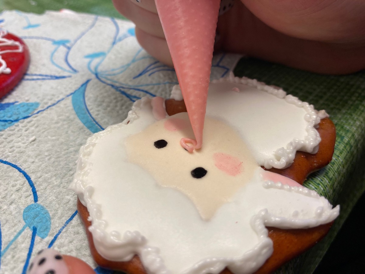 A mézeskalács-díszítésnél Bokodi Imréné segített eligazodni a cukormáz nem is olyan engedelmes világában. Az első próbák után hamar kiderült, hogy ami egyszerűnek tűnik, az figyelmet és biztos kezet kíván. A különböző színű és formájú mézeskalácsok végül mind saját karaktert kaptak, a kis bárányok pedig különösen kedves darabokká váltak.